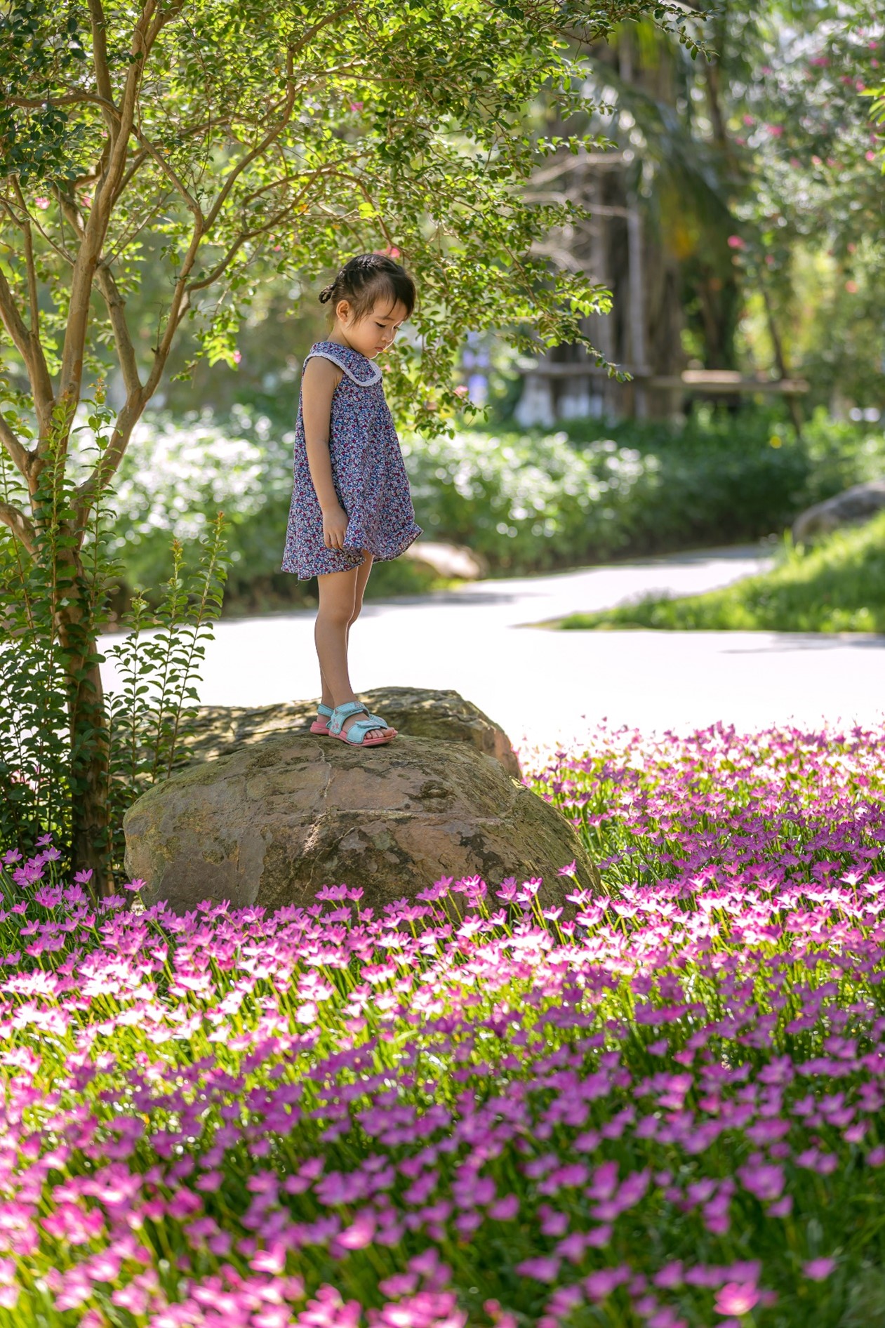 Bước nhẹ chân thêm vài bước, tôi còn thấy mấy tấm biển chữ xanh nền trắng khác cũng thật dễ thương: “Đừng hái hoa làm hoa buồn”, “Bình yên giữa thiên nhiên Ecopark”...