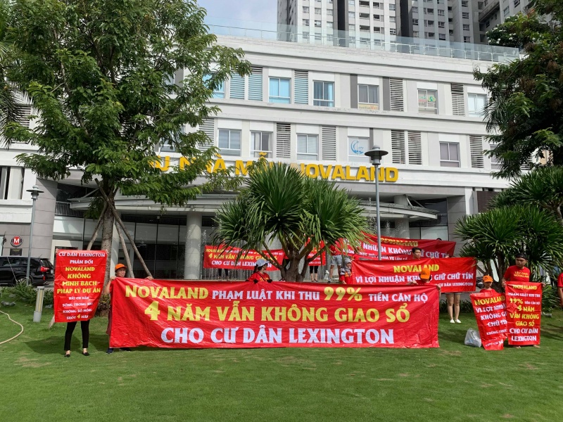 Trước đó không lâu, vào tháng 7/2019, cư dân chung cư Lexington Residence, quận 2, TP.HCM do Tập đoàn Novaland là chủ đầu tư cũng căng băng rôn phản đối khi hoàn thành 99% nghĩa vụ tài chính và nhận bàn giao căn hộ từ 4 năm qua nhưng vẫn sống trong căn nhà “vô chủ”.