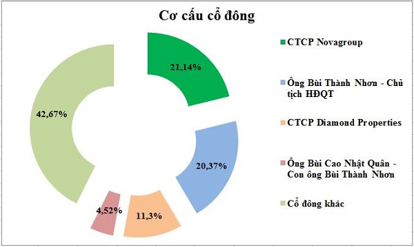 Theo báo cáo thường niên 2018, tính tới ngày 26/3/2019, cổ đông lớn nhất của Novaland là Công ty cổ phần Novagroup của ông Bùi Thành Nhơn – Chủ tịch Hội đồng quản trị Tập đoàn Novaland bên cạnh Công ty cổ phần Diamond Properties cũng là của ông Nhơn nắm 11,3% vốn. Ngoài ra, ông Nhơn cũng sở hữu 20,37% vốn của Tập đoàn. Như vậy có thể thấy hơn nửa cơ cấu sở hữu của Novaland nằm trong tay vị thuyền trưởng của Tập đoàn.