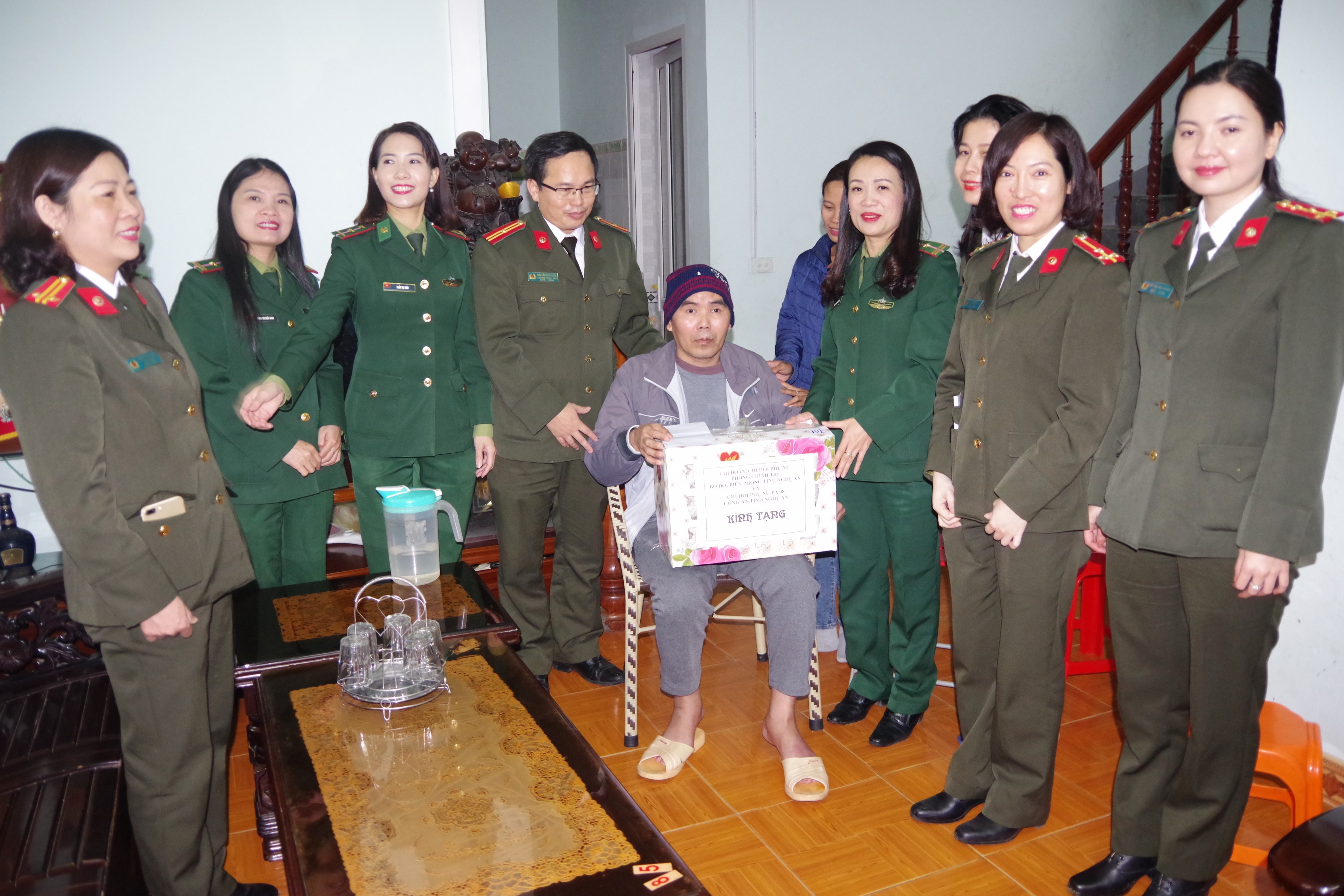 Hội viên phụ nữ Phòng Chính trị BĐBP tỉnh phối hợp Hội viên Phụ nữ Phòng Xuất nhập cảnh Công an Nghệ An thăm hỏi tặng quà đồng đội có hoàn cảnh khó khăn