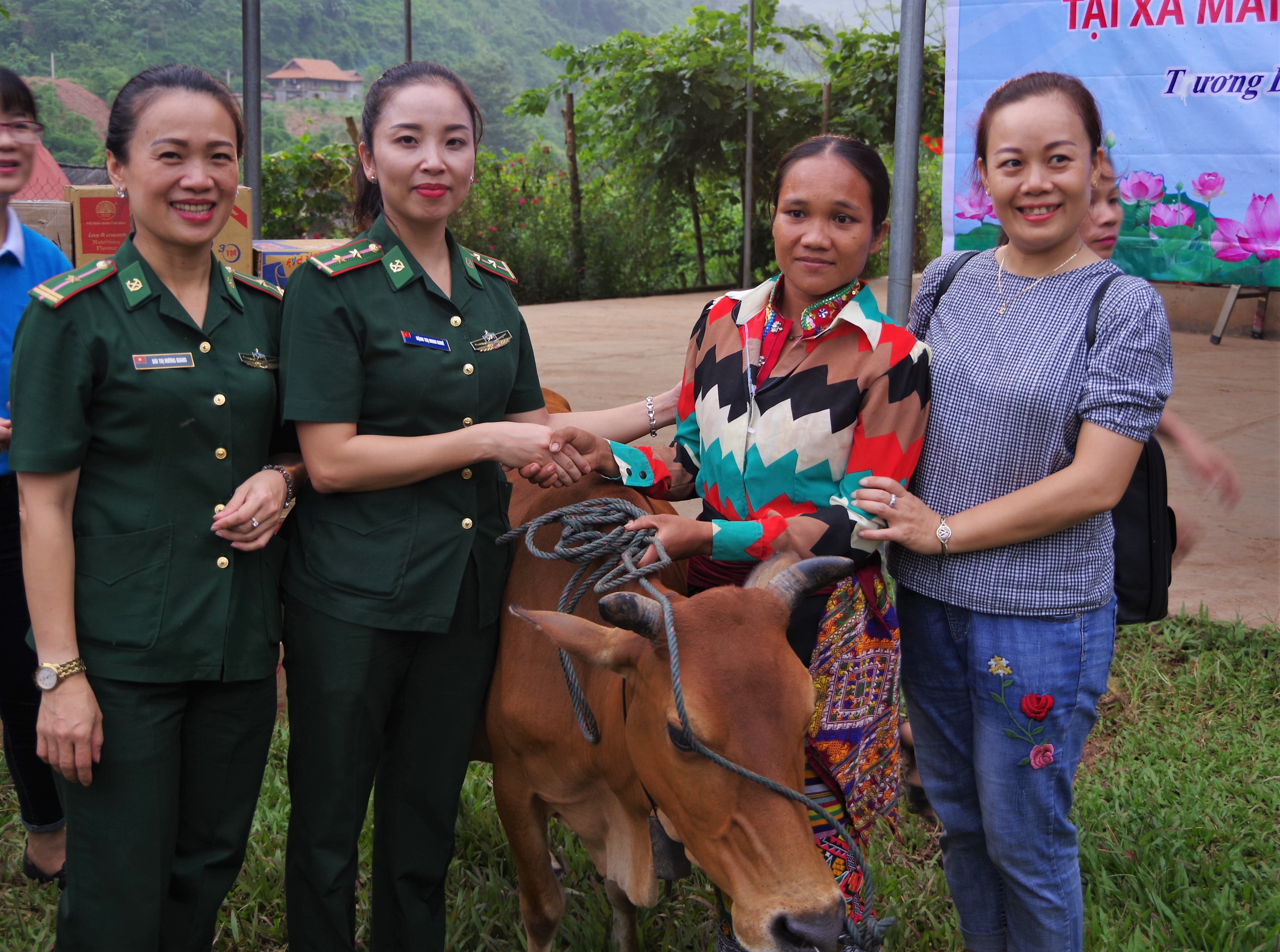 Hội phụ nữ BĐBP Nghệ An phối hợp Hội LHPN TP Vinh tổ chức chương trình “Đồng hành cùng phụ nữ biên cương” tặng bò giống cho phụ nữ nghèo địa bàn xã biên giới Nhôn Mai, huyện Tương Dương