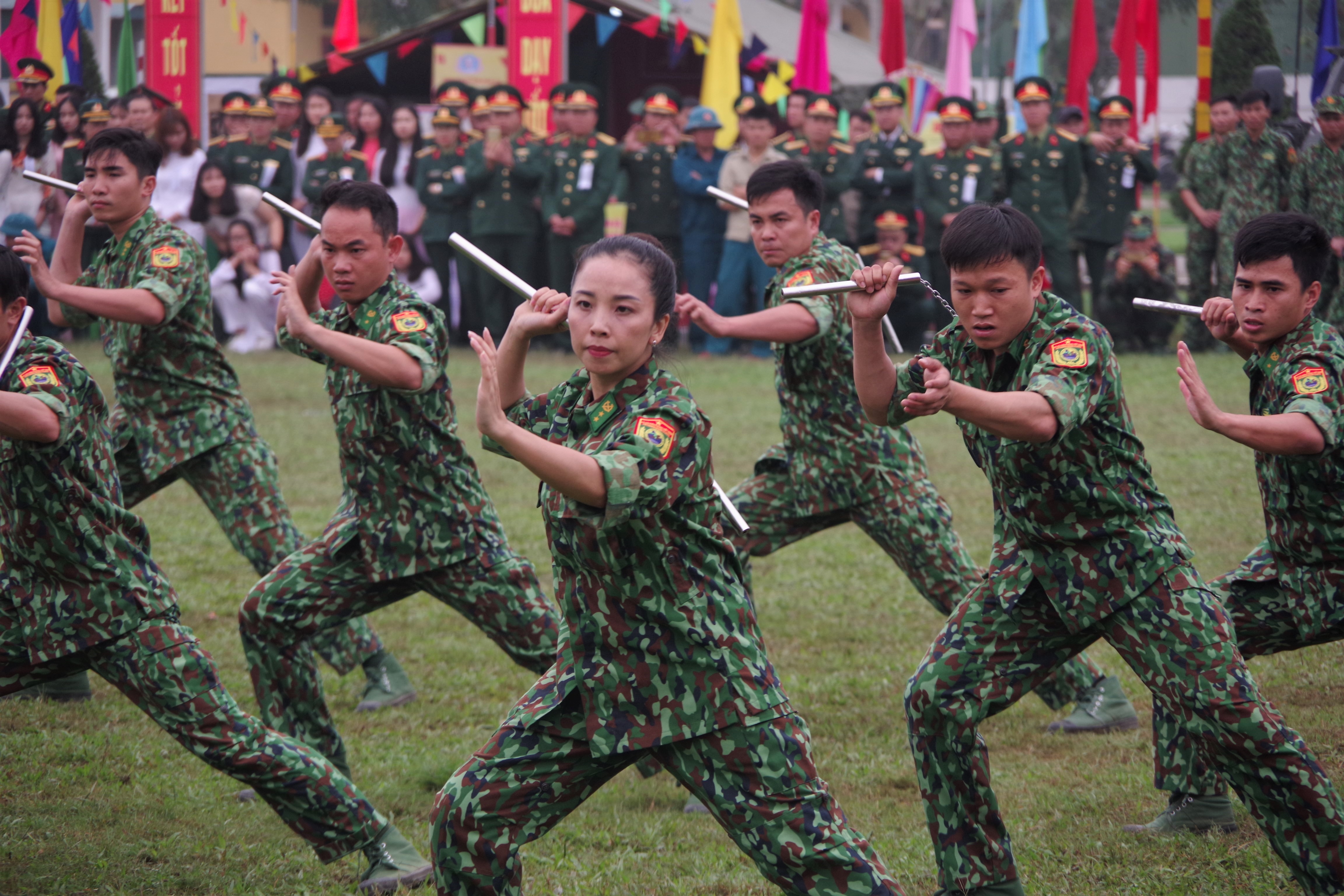 Hội viên phụ nữ Đội TTVH BĐBP Nghệ An biểu diễn phục vụ CBCS và nhân dân trên địa bàn biên giới