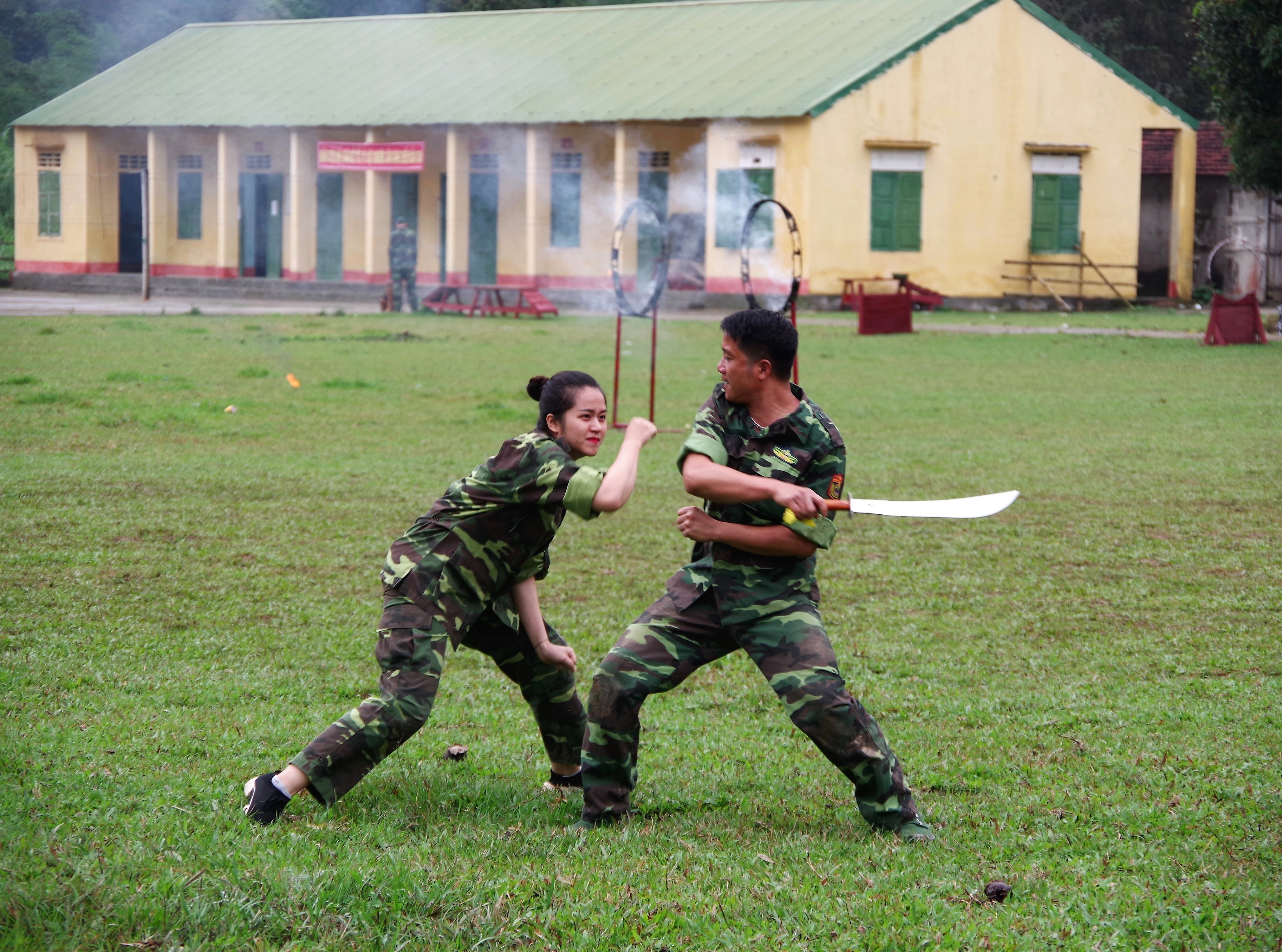 Các nữ quân nhân BĐBP Nghệ An luyện tập võ thuật sẵn sàng chiến đấu, nâng cao hiệu quả công tác
