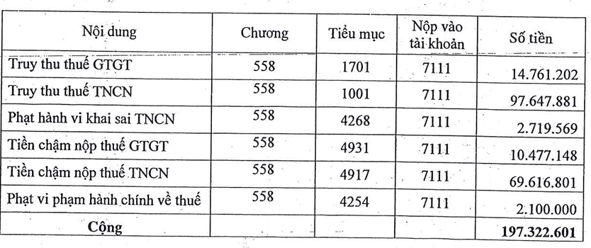 Với vi phạm này, TDM bị xử phạt hành chính gần 5 triệu đồng. Công ty cũng bị truy thu thuế hơn 112 triệu đồng và tiền chậm nộp 80 triệu đồng.