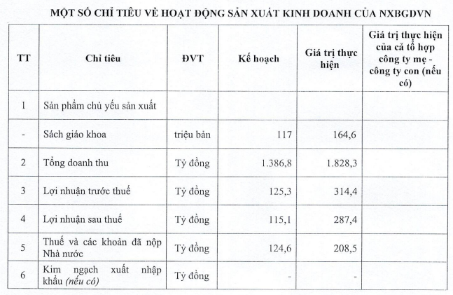 Trong đó, doanh thu thuần từ hoạt động kinh doanh là 1.781 tỷ và doanh thu tài chính 44,9 tỷ đồng, thu nhập khác chỉ 2,8 tỷ đồng. Như vậy, phần lớn doanh thu của NXB Giáo dục Việt Nam chủ yếu đến từ phân phối sách giáo khoa.