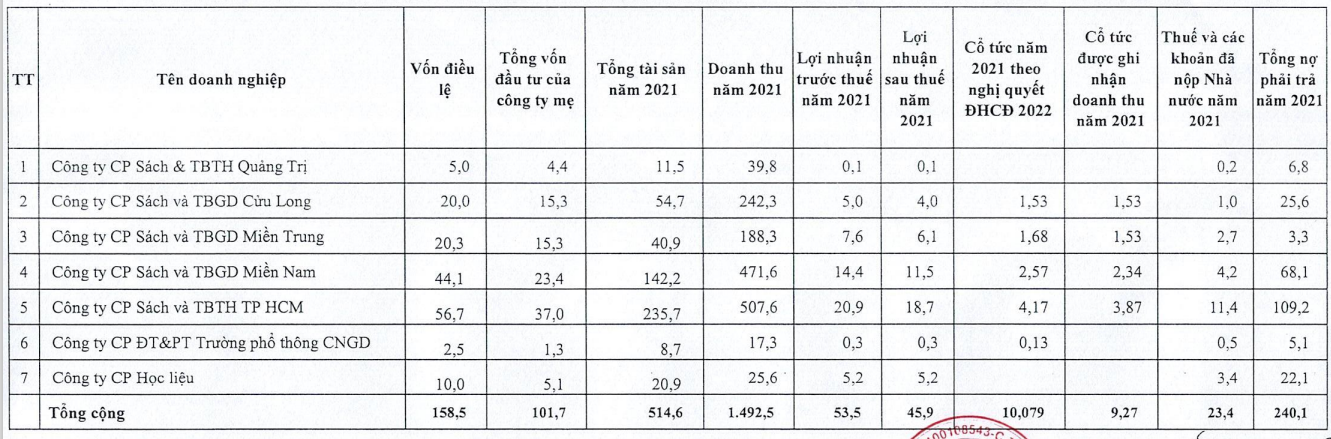 Về tình hình đầu tư tại các công ty con, cả 7 công ty con trực thuộc Nhà xuất bản Giáo dục đều ghi nhận lợi nhuận dương trong năm 2021. Trong đó, Công ty CP Sách và Thiết bị trường học TP.HCM báo lãi sau thuế cao nhất gần 19 tỷ đồng. Kế đến là Công ty CP Sách và Thiết bị giáo dục Miền Nam cũng lãi ròng 11,5 tỷ.