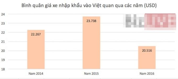 Sự sụt giảm nói trên phần nào được lý giải do tác động từ thay đổi của chính sách thuế. Năm 2016, có hai lần điều chỉnh cách tính thuế tiêu thụ đặc biệt đối với ô tô.Cụ thể, từ ngày 1/1/2016, giá tính thuế tiêu thụ đặc biệt với ô tô là giá bán ra của nhà nhập khẩu (giá bán buôn) thay vì giá CIF đã kèm thuế nhập khẩu như trước.Tiếp theo đó, kể từ 1/7/2016, thuế tiêu thụ đặc biệt đối với các loại ô tô có dung tích xi lanh động cơ lớn cũng tăng lên đáng kể theo luật mới (dung tích trên 1.500 cm3 đến dưới 2.000 cm3 có mức thuế 45%...).Các thay đổi nói trên đều khiến đa số các loại ô tô nhập khẩu phải chịu mức tăng giá đáng kể, nhất là các loại xe có dung tích xi lanh động cơ lớn. Riêng đối với xe dung tích xi lanh nhỏ thì "hạ nhiệt" hơn về thuế tiêu thụ đặc biệt.Chính điều này cũng khiến cơ cấu nhập khẩu xe năm 2016 cũng có sự thay đổi. Bảng thống kê dưới đây cho thấy giá bình quân xe năm 2016 thấp hơn so với 2015. Điều này được lý giải do dòng xe nhỏ giá rẻ năm 2016 tăng mạnh.