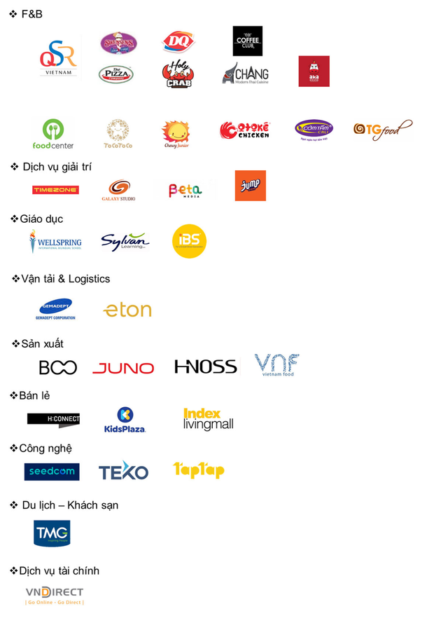 Người tiêu dùng Việt Nam đã rất quen thuộc với những cái tên như trà sữa Toco Toco, thời trang BOO, rạp phim Galaxy, kem Dairy Queen… Những người quan tâm đến đầu tư cũng không lạ lẫm gì VNDirect, Gemadept, Seedcom…