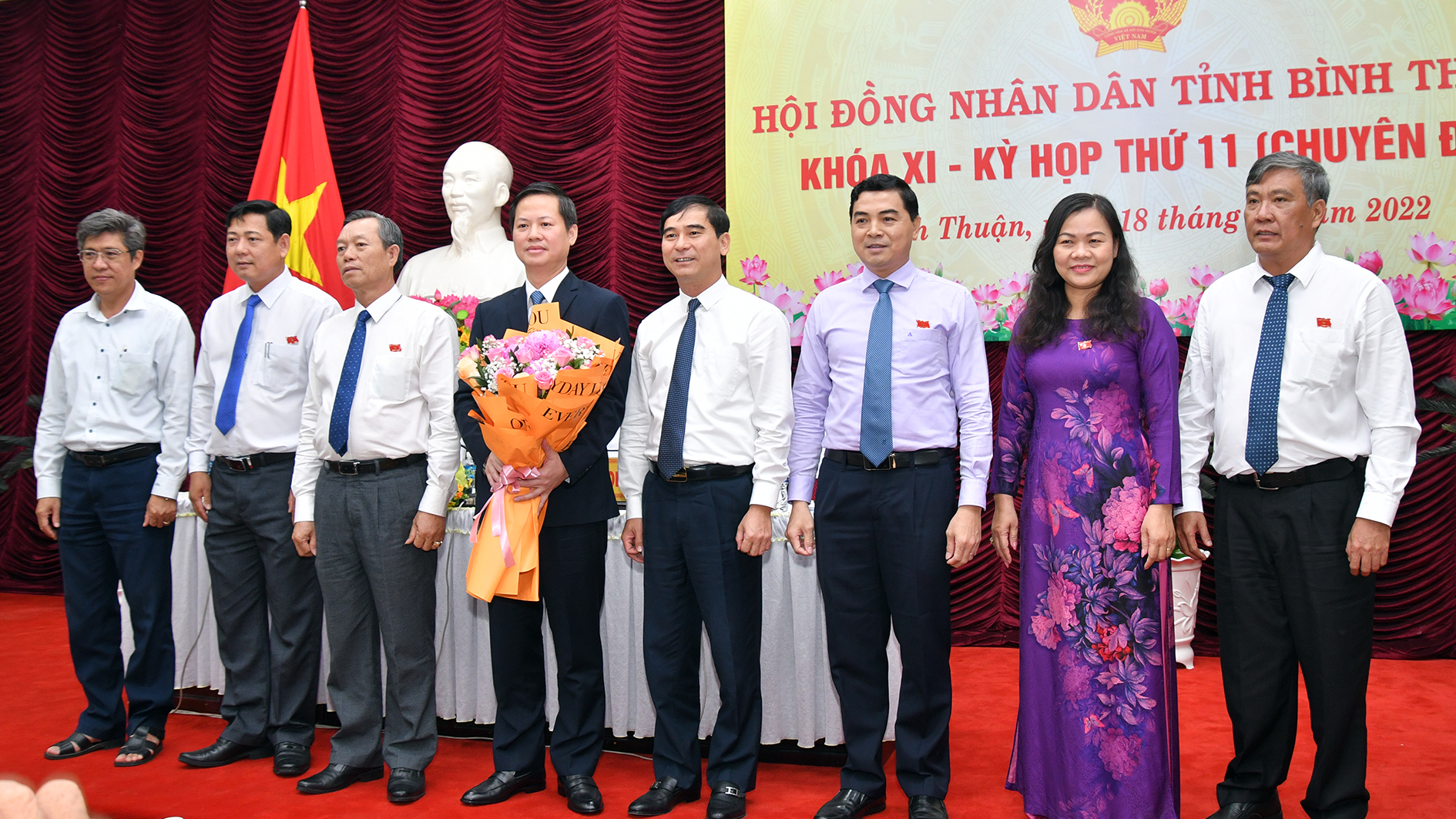 Các đại biểu chụp hình lưu niệm với tân Chủ tịch UBND tỉnh Bình Thuận - Đoàn Anh Dũng
