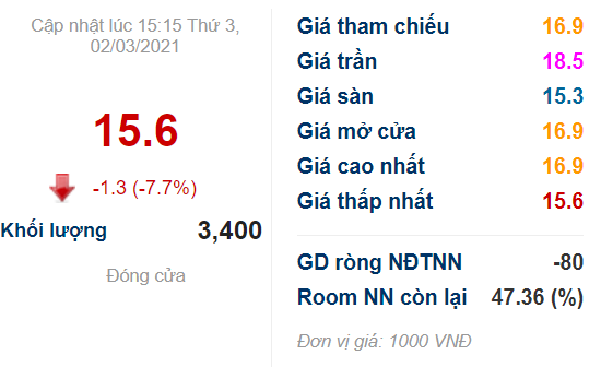 Cổ phiếu UNI giao dịch trên thị trường chứng khoán chiều ngày 2/3/2021. Nguồn: Cafef.
