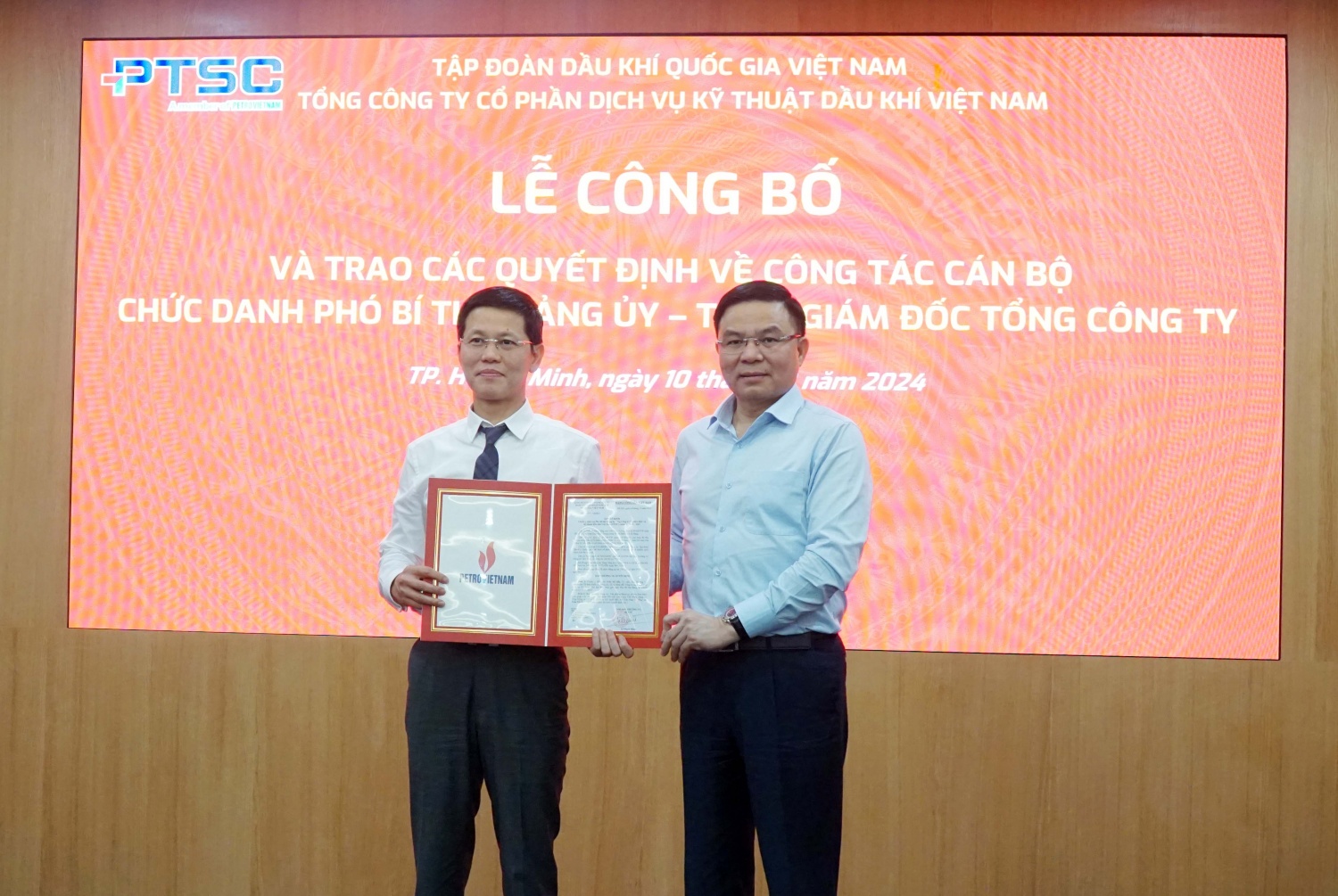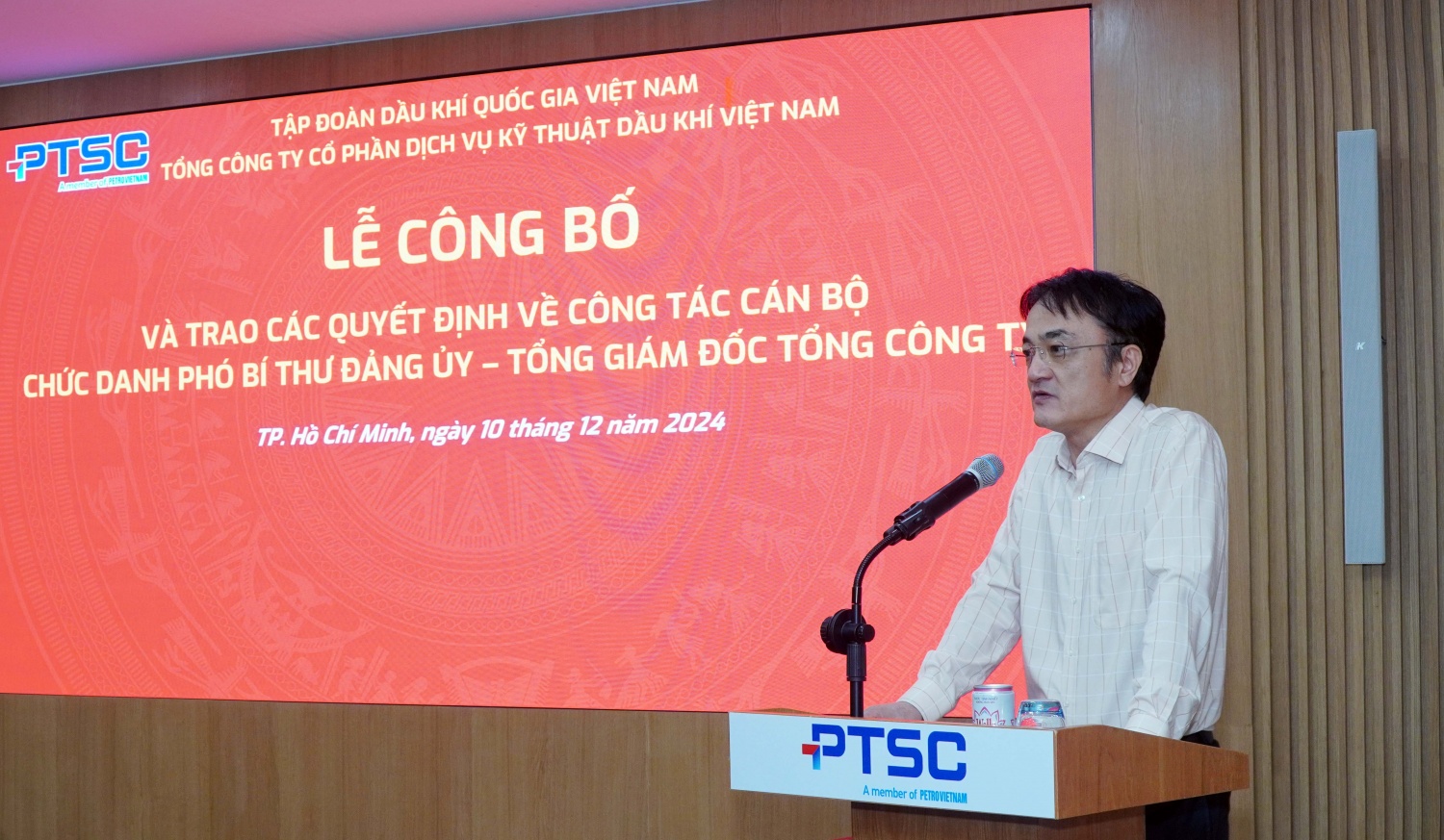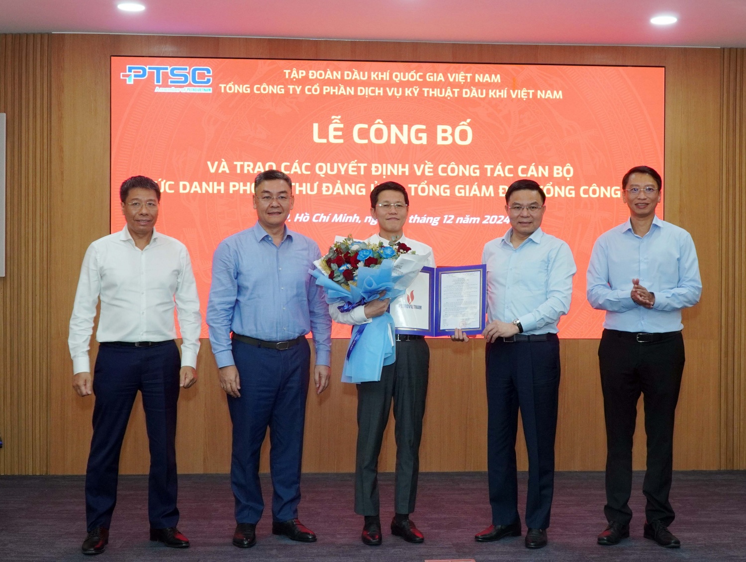 Ngày 10/12/2024, tại TP.HCM, Tổng CTCP Dịch vụ Kỹ thuật Dầu khí Việt Nam (PTSC) tổ chức Lễ công bố và trao các quyết định về công tác cán bộ, chức danh Phó Bí thư Đảng ủy, Người đại diện phần vốn Tập đoàn Dầu khí Việt Nam (Petrovietnam) tại PTSC và Tổng Giám đốc PTSC.