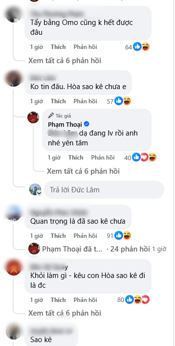 Tuy nhiên, dưới bài đăng của Phạm Thoại, netizen chỉ đổ xô vào để lại hàng loạt bình luận liên quan đến ồn ào sao kê thời gian qua. Trước những câu hỏi của cư dân mạng như "Hòa sao kê chưa em?", nam Tiktoker cũng lên tiếng đáp trả: "Dạ đang làm việc rồi anh nhé, anh yên tâm".