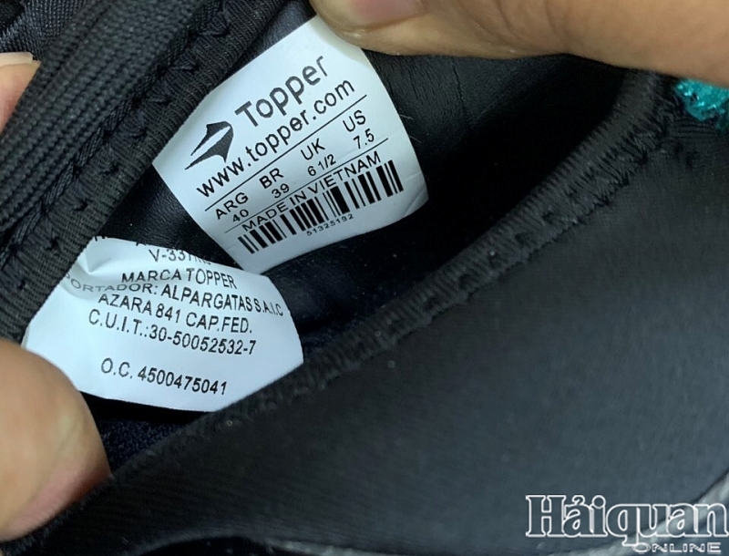Kết quả, số lượng, chủng loại hàng hóa đúng khai báo; trên các đôi giày đều gắn chữ TOPPER, bên trong giày có tem trắng ghi dòng chữ “MADE IN VIETNAM” kèm theo các thông tin bằng chữ Argentina.