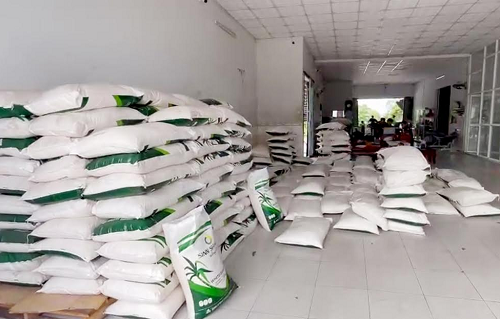 100 bao đường cát nhập lậu được phát hiện tại một kho hàng.