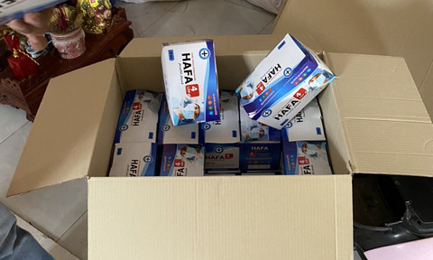Những thùng khẩu trang bẩn được phát hiện trong kho.