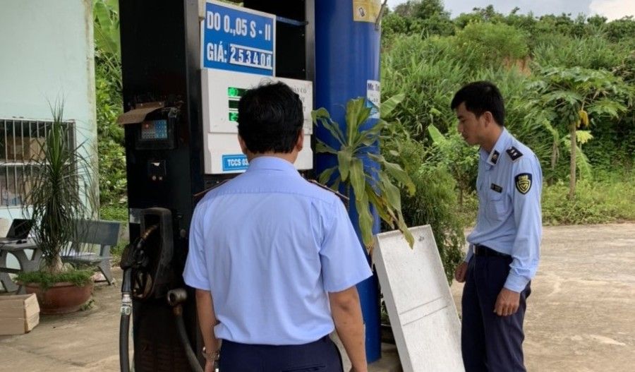 Cụ thể, ngày 21/7/2022, Cục QLTT tỉnh Kon Tum phối hợp cùng Sở Khoa học và Công nghệ tỉnh, thực hiện kiểm tra tại Cửa hàng Xăng dầu Nam Phúc - Chi nhánh Công ty CP đầu tư Nam Phúc trên địa bàn huyện Đắk Tô.