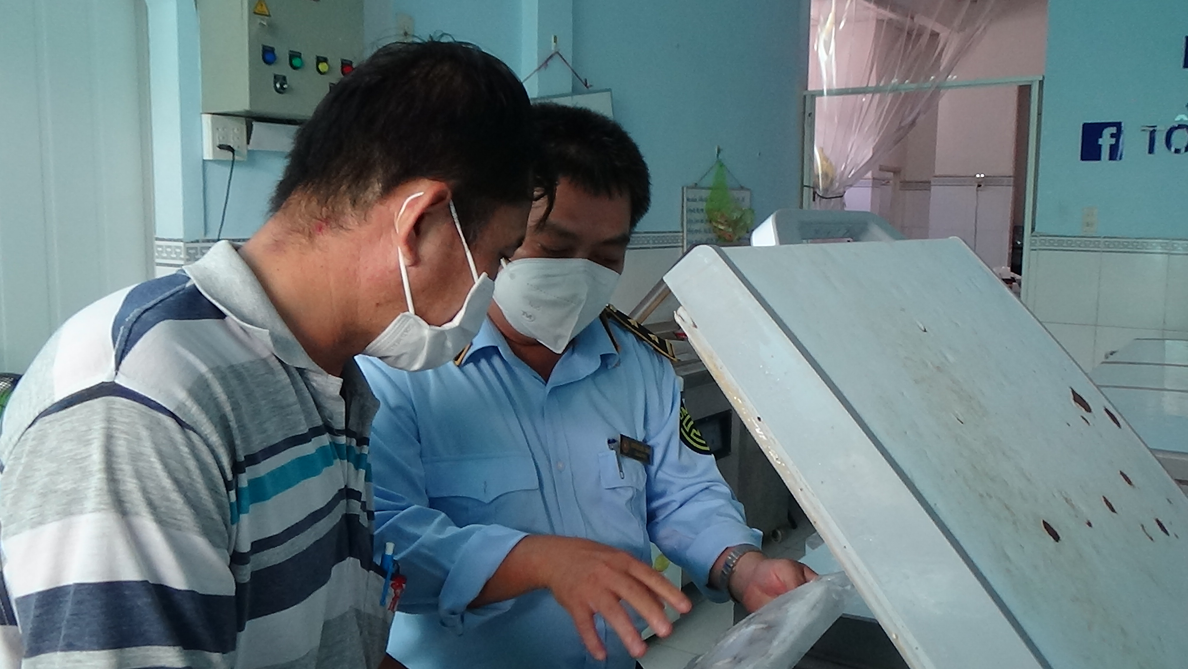 Quá trình kiểm tra phát hiện tại điểm kinh doanh đang kinh doanh 734 kg sản phẩm thực phẩm gồm đuôi heo, vú heo, dồi trường, cua nâu Na-Uy và sụn gà Thái Lan, có tổng giá trị theo giá niêm yết là 89.040.000 đồng.