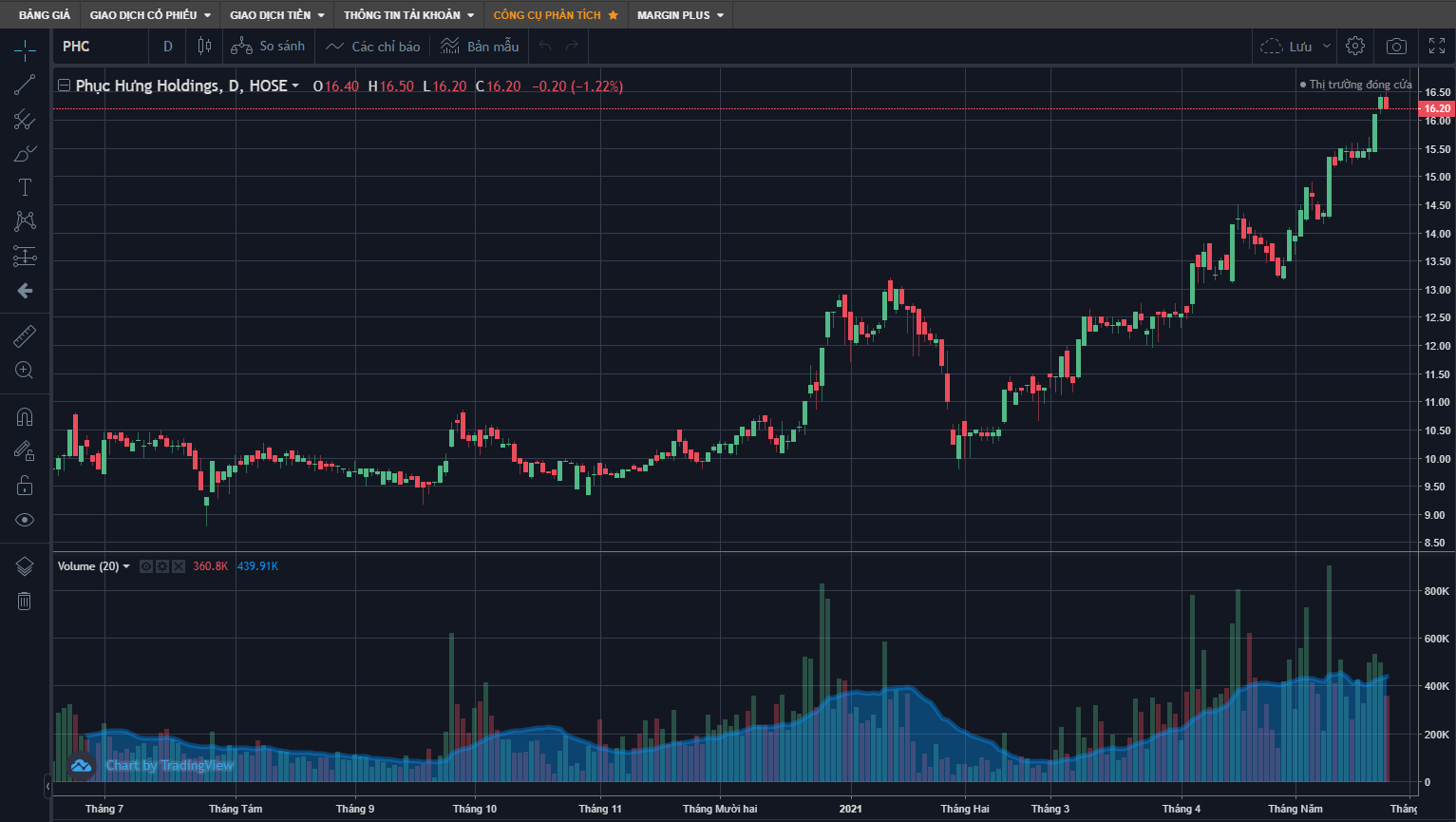 Trên thị trường chứng khoán, đóng cửa phiên giao dịch ngày 26/5, cổ phiếu PHC đang giao dịch tại mức 16.200 đồng/cổ phiếu, ghi nhận tăng gần 45% trong vòng 3 tháng qua. Khối lượng giao dịch khớp lệnh đạt hơn 343.000 đơn vị mỗi phiên.