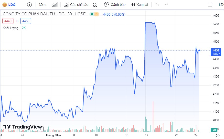 Diễn biến giá cổ phiếu LDG trong một tháng gần đây. (Nguồn: Tradingview).