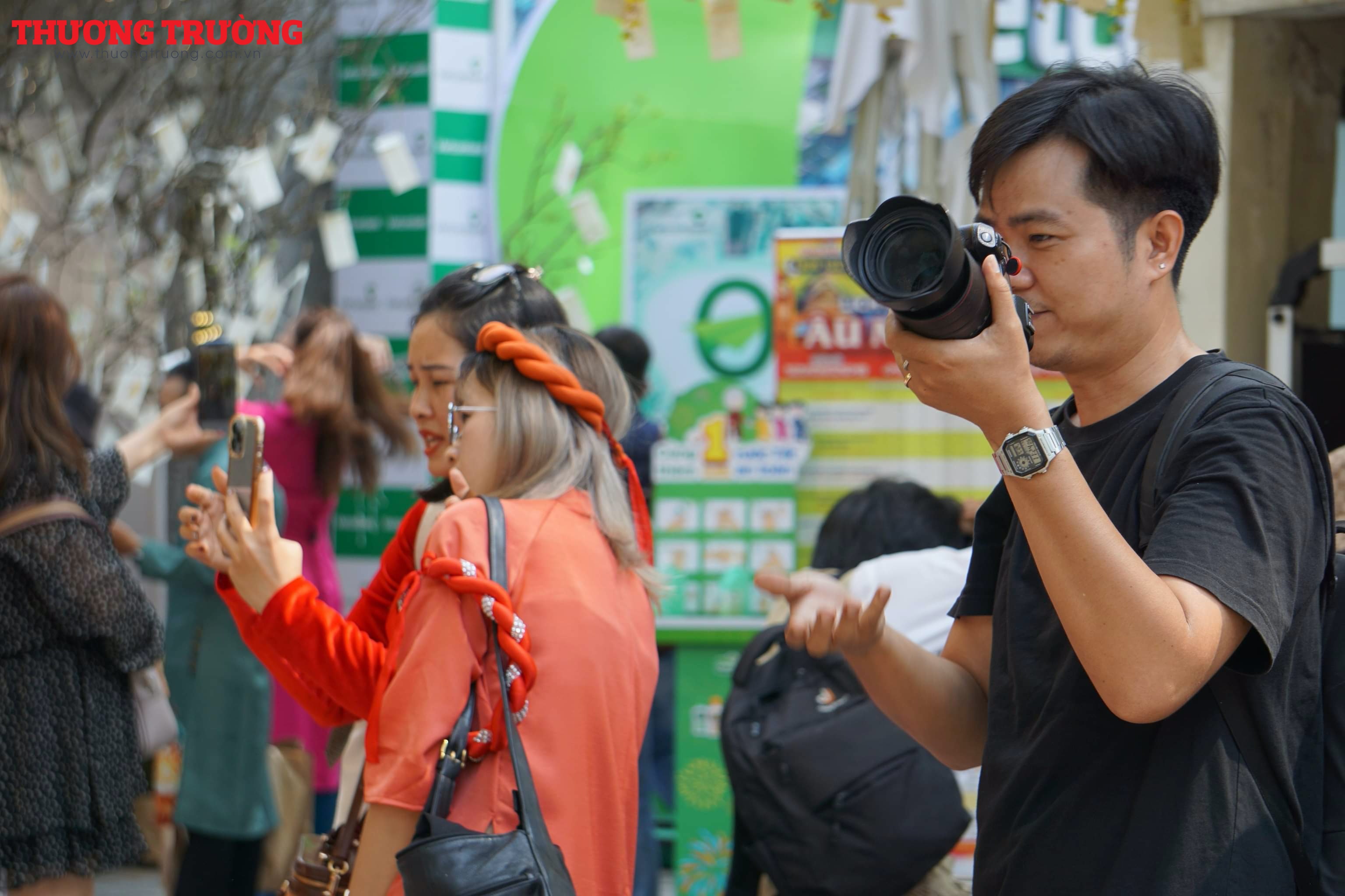 Mọi người thích thú chụp hình "check-in" dọc đường mai vàng, phố ông đồ.