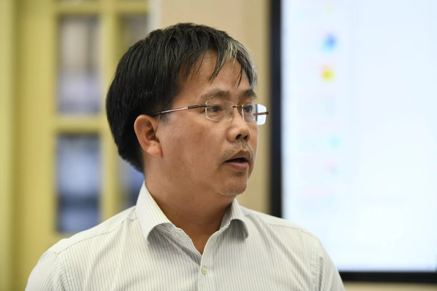 Ông Mai Văn Khiêm, Giám đốc Trung tâm Dự báo Khí tượng thuỷ văn quốc gia báo cáo Phó Thủ tướng về diễn biến bão số 3.