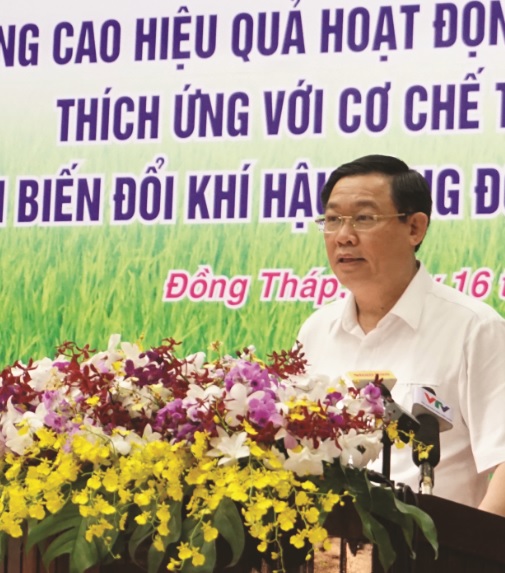 Sáng 16/4 tại tỉnh Đồng Tháp, Phó Thủ tướng Vương Đình Huệ, Trưởng Ban Chỉ đạo Trung ương đổi mới và phát triển kinh tế tập thể, hợp tác xã đã chủ trì Diễn đàn “Củng cố và nâng cao hiệu quả hoạt động của HTX nông nghiệp ứng phó với BĐKH ở ĐBSCL”.