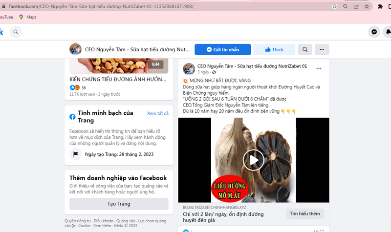 Đáng chú ý, trang chính hãng của CEO Nguyễn Tâm - TGĐ Taphaco vẫn ngang nhiên quảng cáo "Sữa hạt NutriZabet - Siêu tái tạo tế bào beta ở tụy" sau cảnh báo của Cục An toàn thực phẩm do vi phạm quy định của pháp luật về quảng cáo.