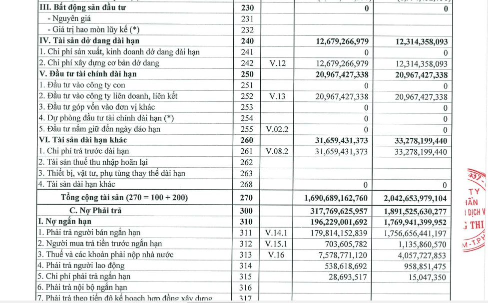 Báo cáo tài chính của Công ty CP Thương mại Dịch vụ Tràng Thi.