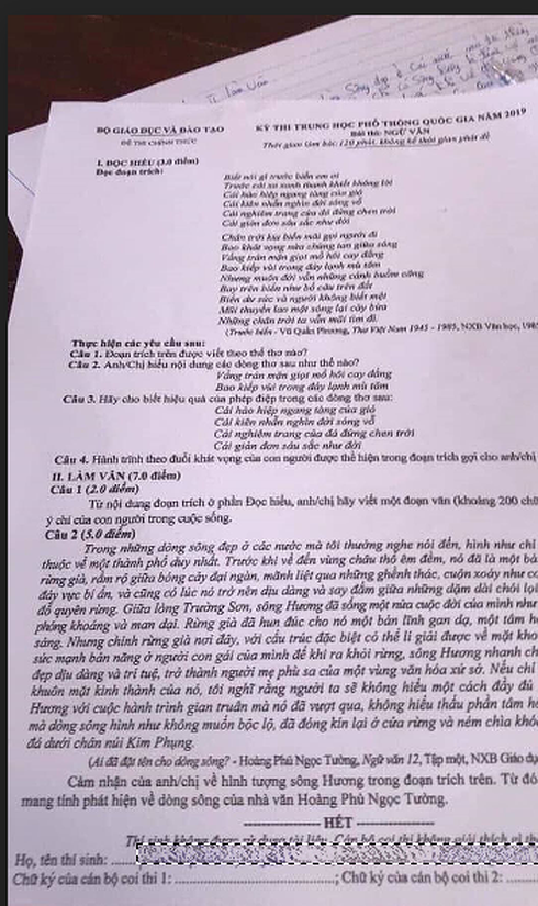 Thí sinh chụp đề thi Ngữ văn và đăng lên mạng xã hội