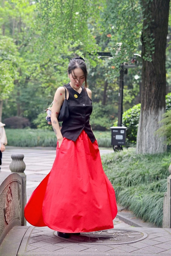 Phương Linh cũng thường xuyên sử dụng áo sơ mi oversize, áo thun màu trung tính kết hợp cùng quần ống rộng, chân váy hoặc jeans để tạo diện mạo thanh lịch nhưng không cứng nhắc. Phong cách tối giản và có tính ứng dụng cao là điểm cộng lớn trong cách phối đồ của nữ ca sĩ.