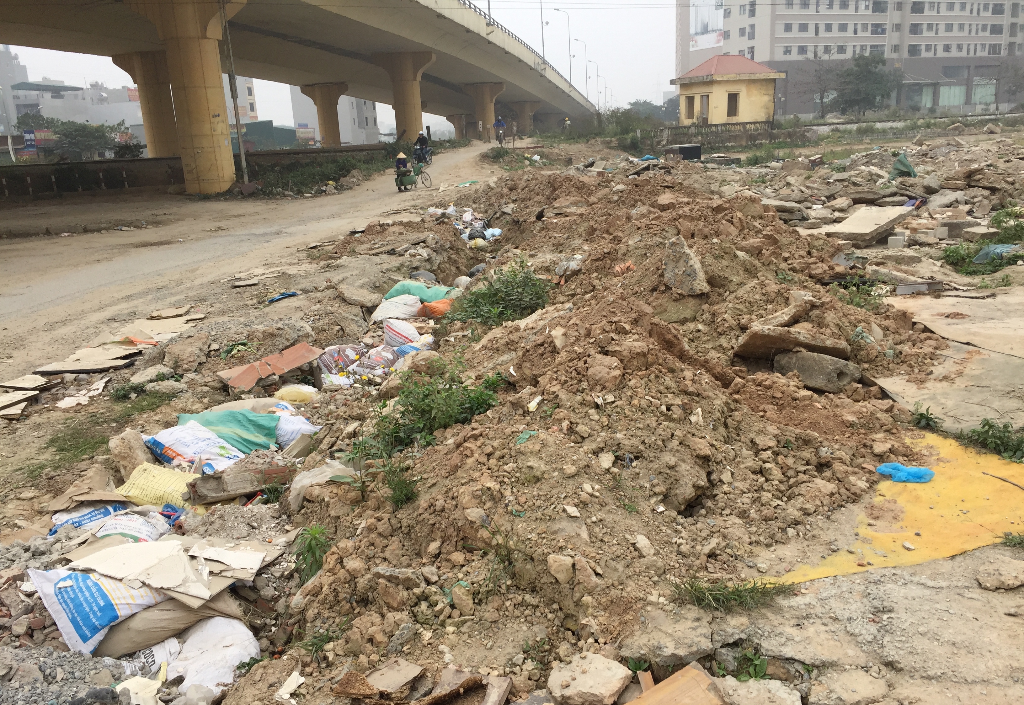 Ngoài ra, tại khu vực dọc hành lang đường sắt dưới chân cầu vượt đường Tố Hữu những “núi” phế thải, rác thải nối tiếp nhau vẫn trơ trơ ngay bên đường đi của khu đô thị và ngay sát các trường học.