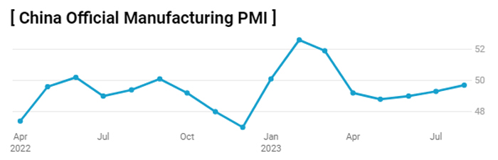 Chỉ số PMI chính thức của ngành sản xuất đã tăng nhẹ lên 49,7 trong tháng 8 từ mức 49,3 trong tháng 7, dấu hiệu cho thấy sự suy thoái ở nền kinh tế lớn thứ hai thế giới có thể vẫn chưa chạm đáy.