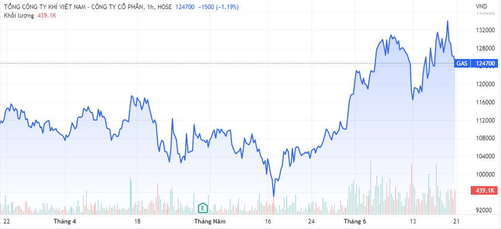 Trên thị trường chứng khoán, đóng cửa phiên giao dịch ngày 20/6, cổ phiếu GAS giảm sàn xuống 124.700 đồng/CP, khối lượng giao dịch đạt hơn 1,71 triệu đơn vị.