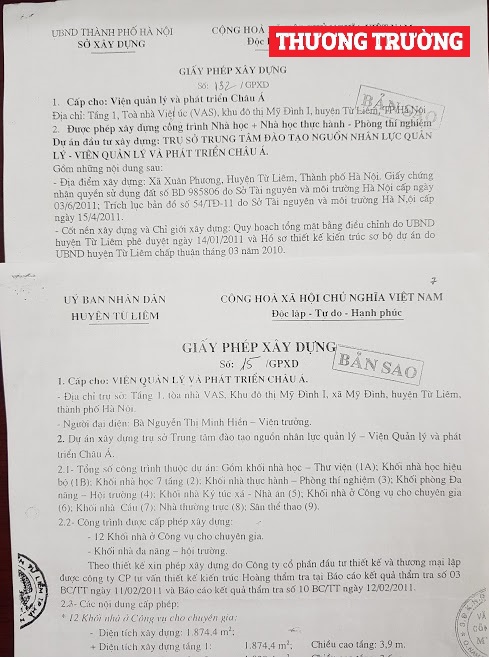 Giấy phép xây dựng được UBND huyện Từ Liêm cấp cho Viện Quản lý và Phát triển Châu Á từ năm 2011 đến nay vẫn còn "hiệu lực"? |