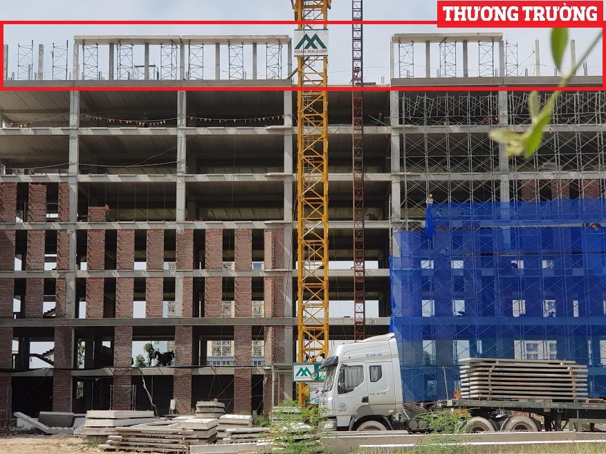 Cụ thể, tại công trình Khối Nhà học (ký hiệu 2) đang được chủ đầu tư đổ cột bê tông để xây dựng lên tầng thứ 8 sai so với giấy phép được cấp.
