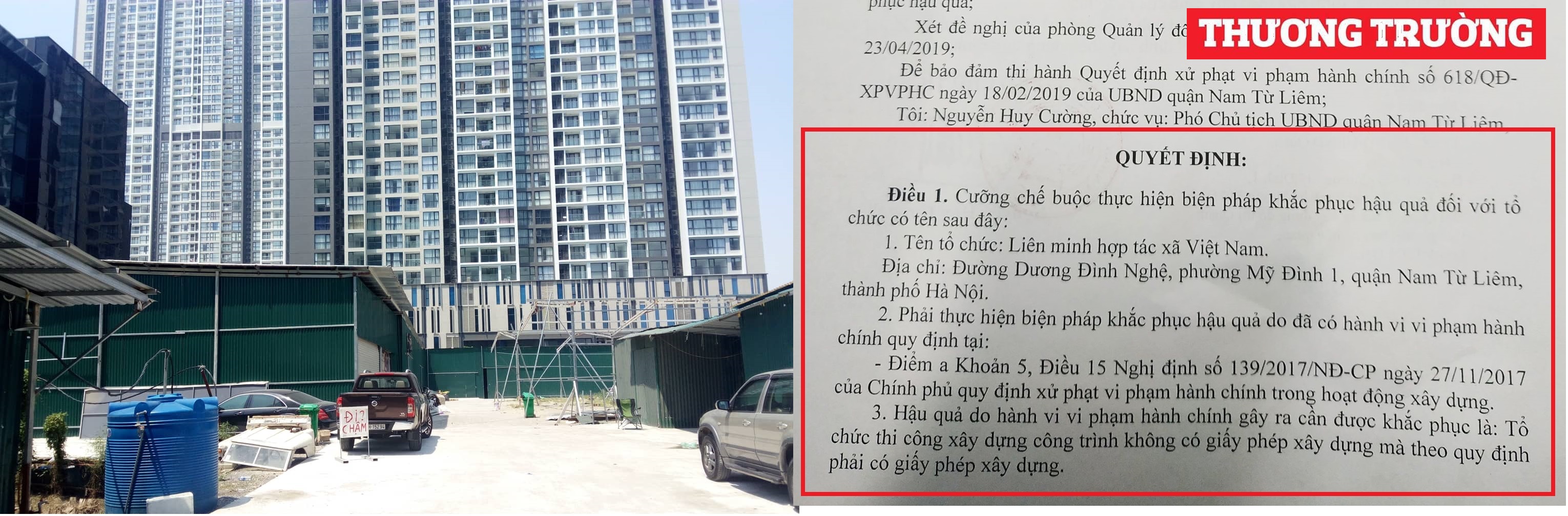 Trước đó, theo tìm hiểu của PV, hàng loạt nhà xưởng trái phép mọc lên trên khu đất rộng hàng nghìn mét vuông của Dự án đầu tư xây dựng Trung tâm giới thiệu sản phẩm ngành nghề truyền thống và Dịch vụ kinh tế hợp tác, hợp tác xã của Liên Minh HTX Việt Nam. Mặc dù, sau khi phát hiện, Phó Chủ tịch UBND quận Nam Từ Liêm – ông Nguyễn Huy Cường đã ra quyết định cưỡng chế ngày 9.5.2019. Đến nay đã gần 5 tháng trôi qua, UBND phường Mỹ Đình 1 chưa có biện pháp xử lý đối với những hạng mục không phép kể trên. Thậm chí, tại lô đất nằm sát đường Dương Đình Nghệ của Liên minh HTX Việt Nam còn tiếp tục mọc lên nhiều hạng mục khác để cho thuê, thu lợi.