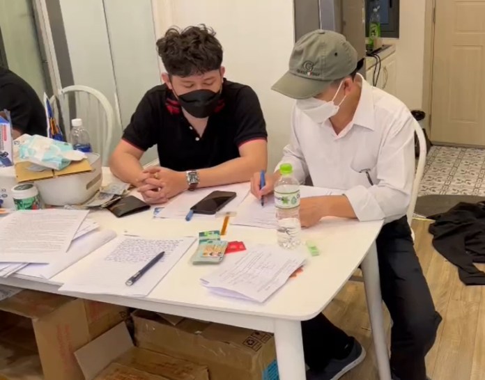 Ban Chuyên án làm việc với Nguyễn Cao Hoàng (áo đen) tại quận Hải Châu, Đà Nẵng.