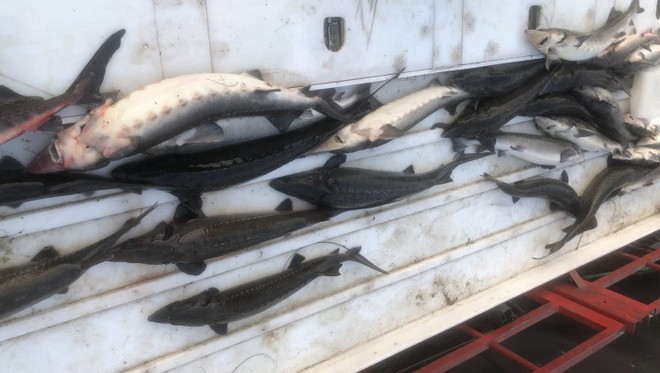Cá tầm trên xe ô tô tải