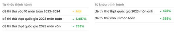 Từ khóa liên quan đến kỳ thi Trung học Phổ thông Quốc gia và tuyển sinh lớp 10 cũng tăng mạnh.