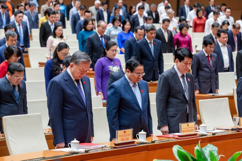Quốc hội dành phút tưởng niệm cố Tổng Bí thư Nguyễn Phú Trọng - Ảnh: VGP