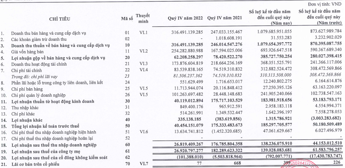 Kết quả, Tasco báo lãi ròng quý 4 giảm mạnh 85% so với cùng kỳ năm trước, xuống còn hơn 26,8 tỷ đồng tỷ đồng.