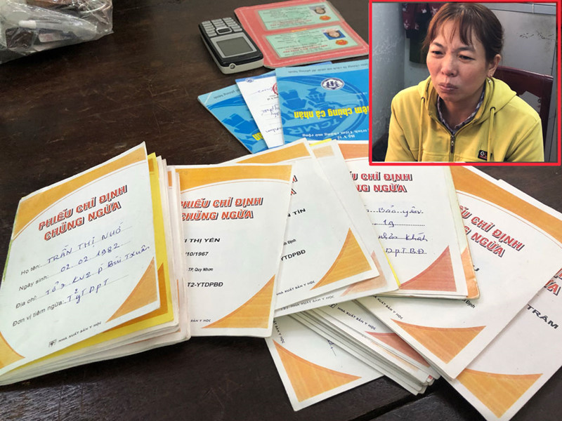 Ngoài ra, mỗi lần tiêm xong bà Sương còn lấy phôi của một phiếu chỉ định tiêm ngừa thật đem photocopy ra thành các phiếu giả để phát cho bị hại.