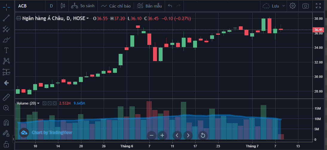 Đóng cửa phiên giao dịch 7/7, giá cổ phiếu ACB dừng ở mức 36.550 đồng/cổ phiếu. Tạm tính theo thị giá này, lượng cổ phiếu bị rao bán trên có giá trị hơn 135 tỷ đồng. Nếu tính theo số tiền cần thực hiện để thu hành án, khối lượng Chi cục Thi hành án dân sự quận Hoàng Mai cần bán là gần 2,1 triệu cổ phiếu ACB.
