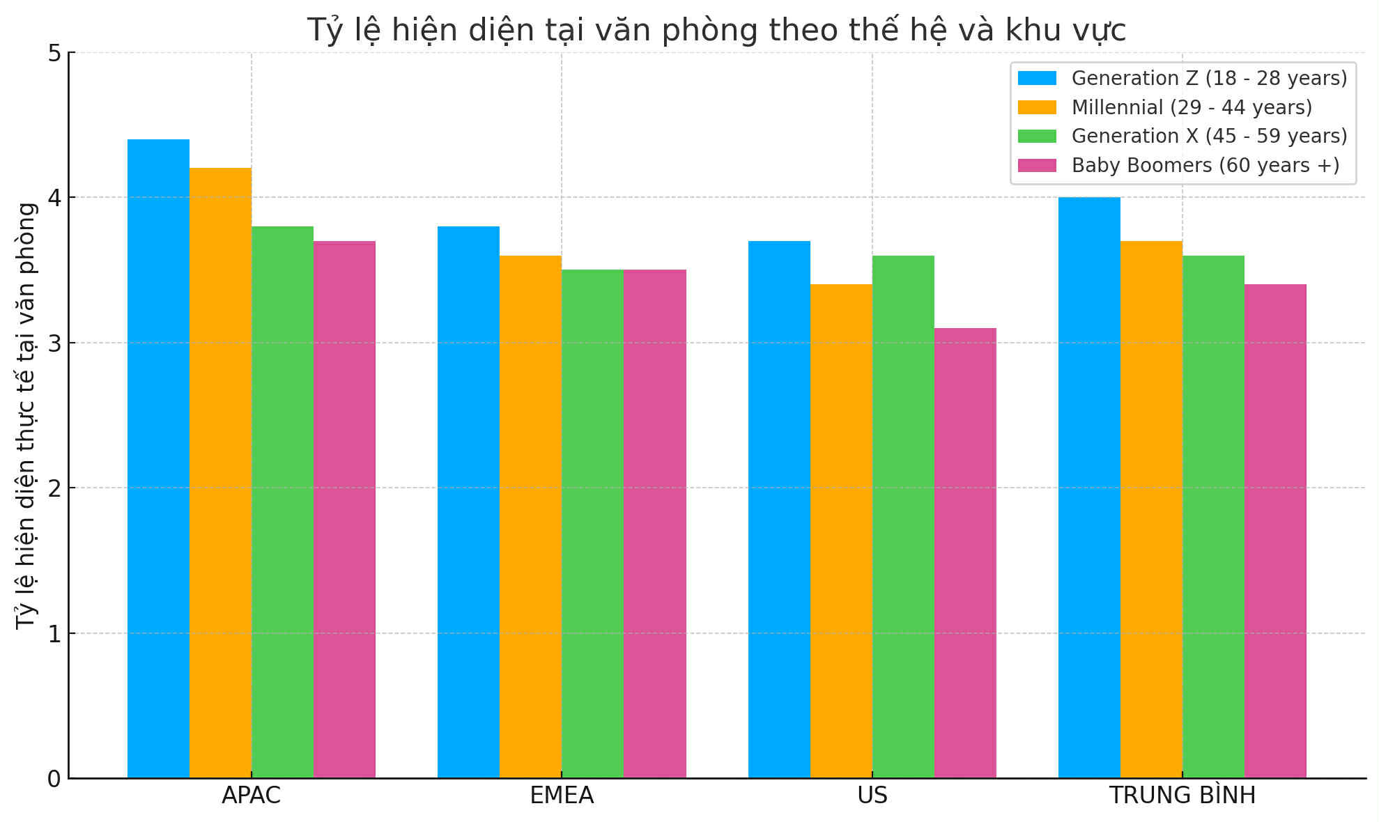 Một điểm thú vị là thế hệ Gen Z là lực lượng lao động trẻ đang dần trở thành chủ lực – lại có xu hướng hiện diện tại văn phòng nhiều hơn các thế hệ trước, chênh lệch đến 12%. Với họ, văn phòng không chỉ là nơi làm việc mà còn là không gian học hỏi, kết nối và phát triển cá nhân. Tuy nhiên, điều đó đồng thời đặt ra yêu cầu cao hơn về hiệu quả sử dụng không gian.