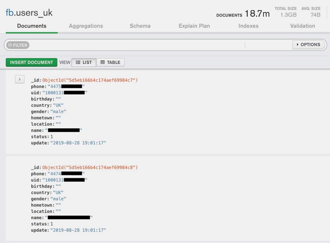 Theo Tech Crunch, thông tin từ một máy chủ chứa dữ liệu của hơn 419 triệu người dùng Facebook trên toàn thế giới vừa bị rò rỉ trên mạng. Bất kỳ ai cũng có thể truy cập dữ liệu của hơn 133 triệu người dùng Mỹ, 18 triệu người dùng Anh và 50 triệu người dùng Việt Nam mà không cần bất kỳ mật khẩu nào.
