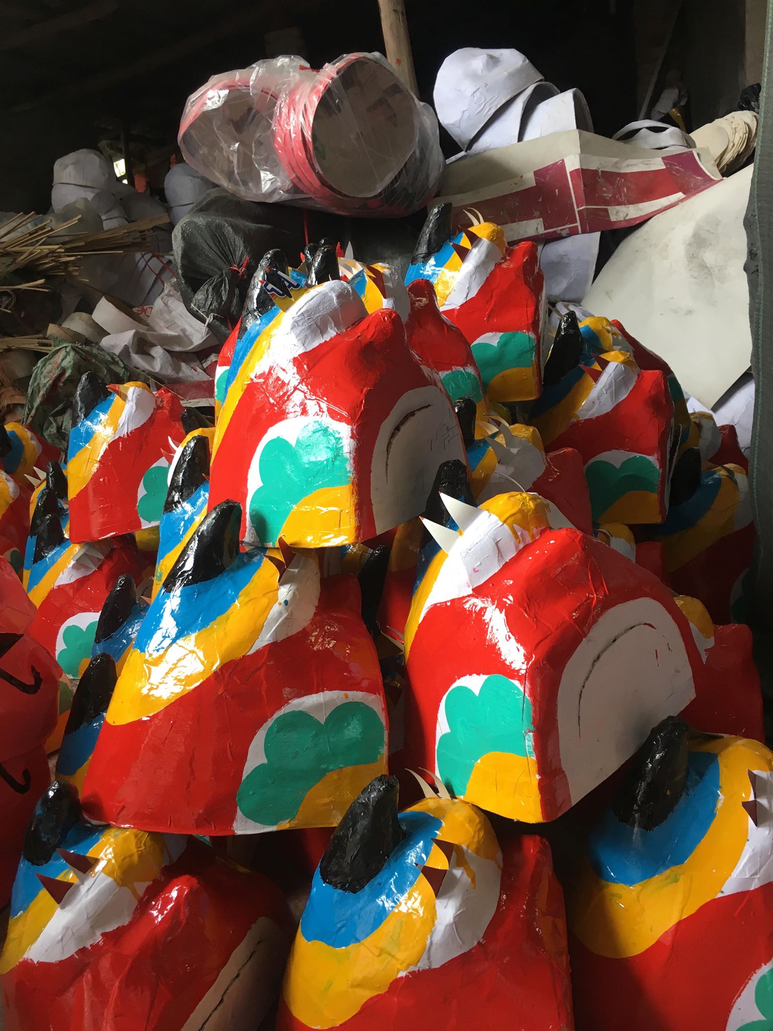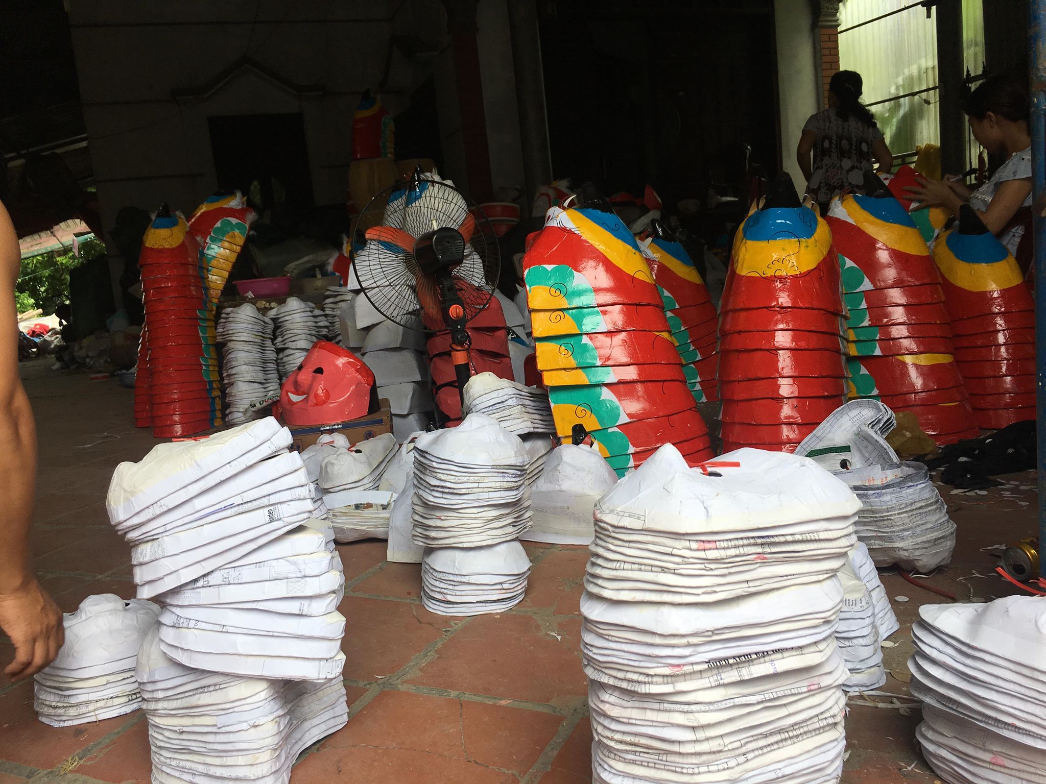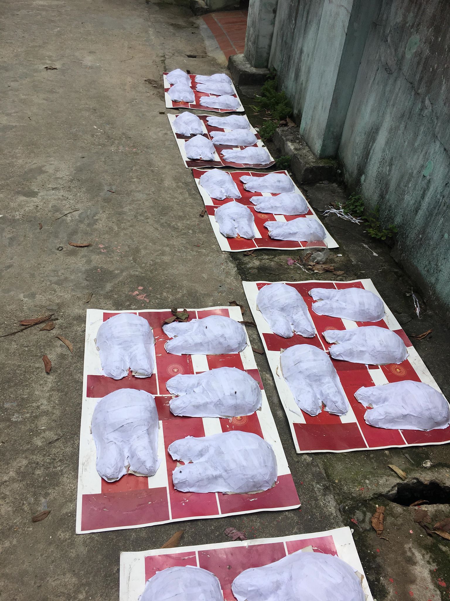 | Sau khi tạo hình, các khuôn mặt nạ được đem phơi khô. |