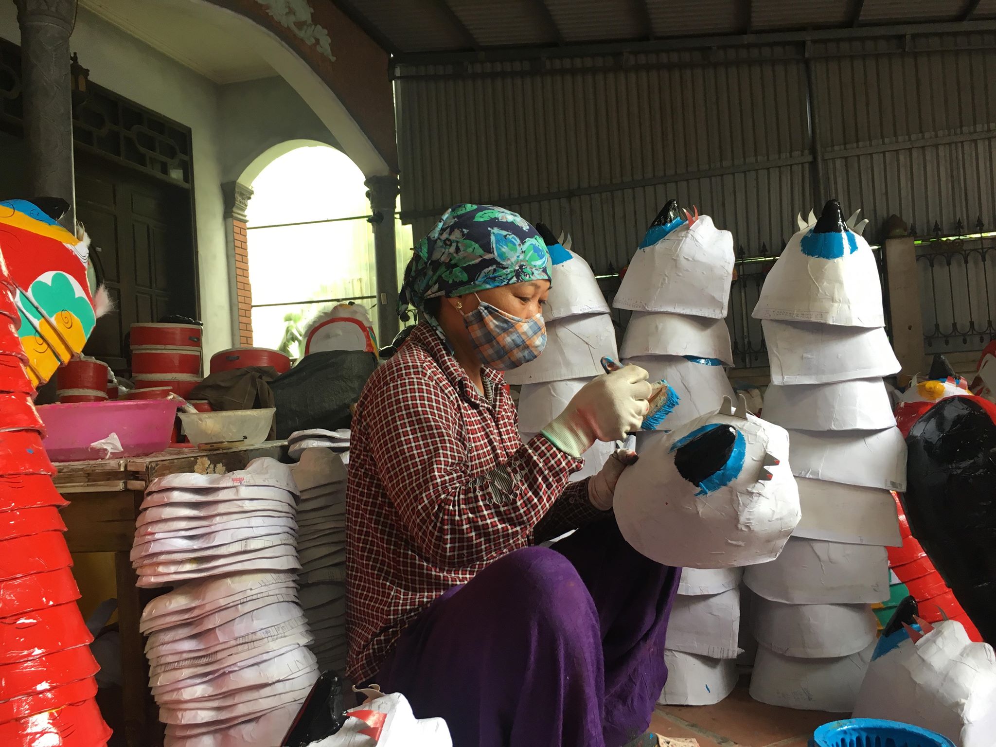 | Một người thợ khác phụ trách việc sơn mặt nạ. |