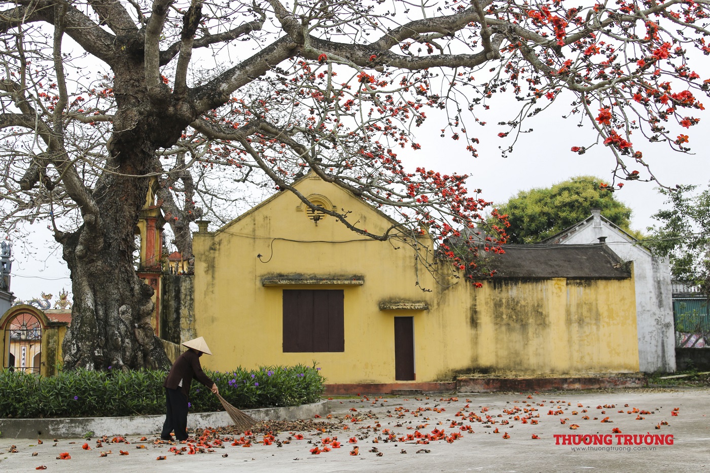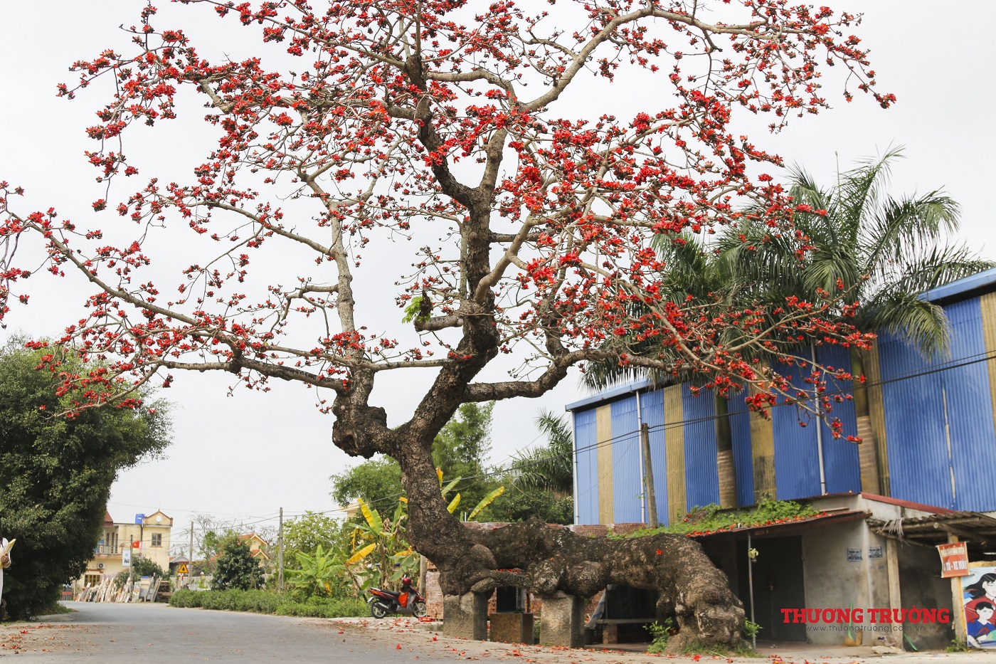 Trên những khoảng trời xanh yên bình chốn thôn quê, hoa gạo điểm tô thêm vẻ đẹp mộc mạc, bình dị vốn có của quê hương. Dáng cây cao bất khuất, hoa đỏ lập lòe như báo hiệu một mùa xuân rực rỡ sắp qua đi và mùa hè sôi động lại đến gần.