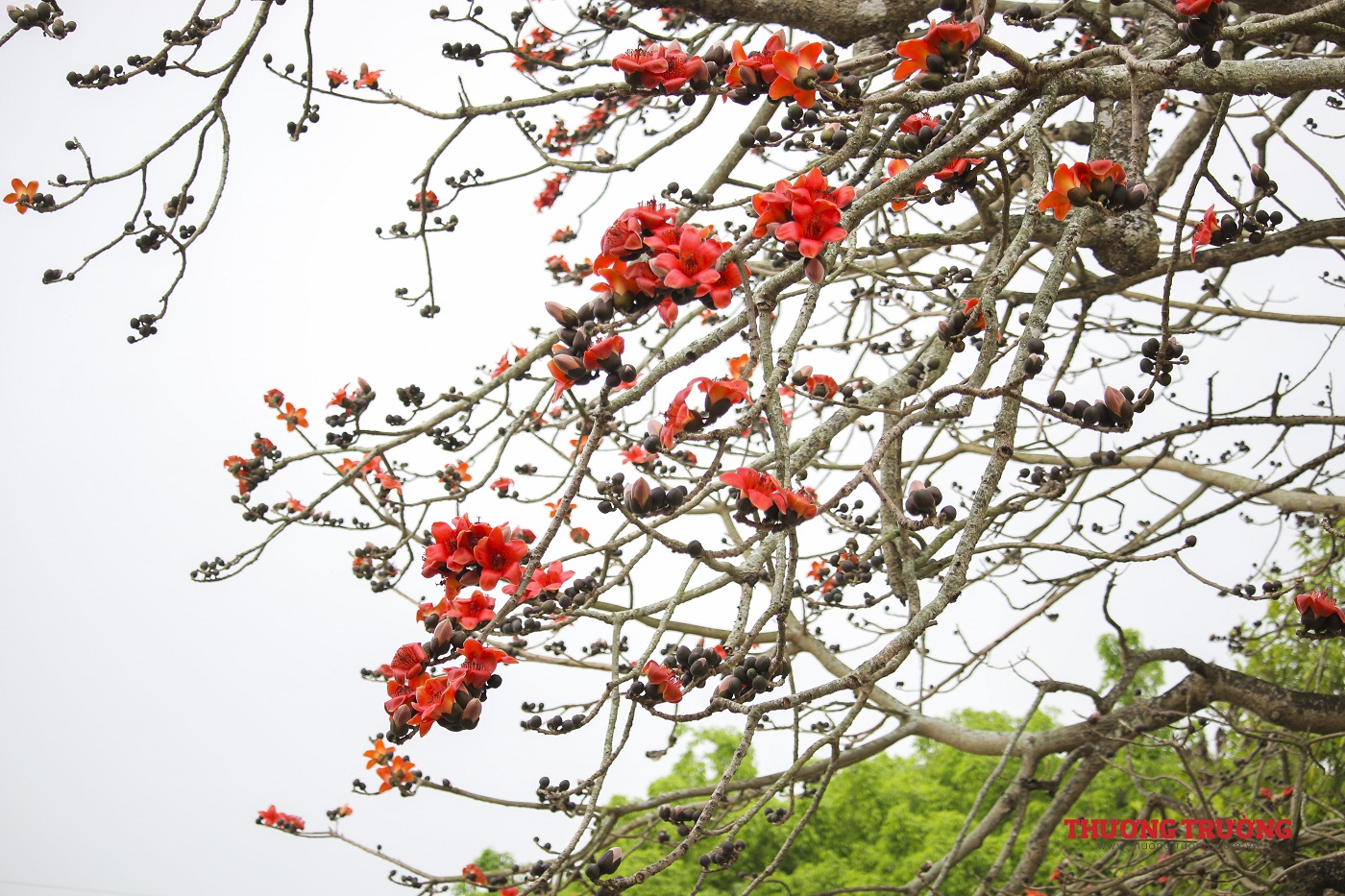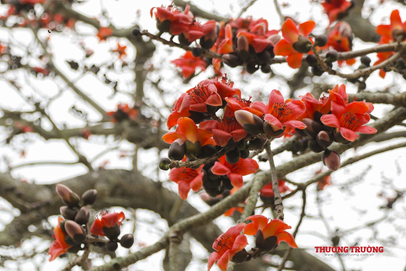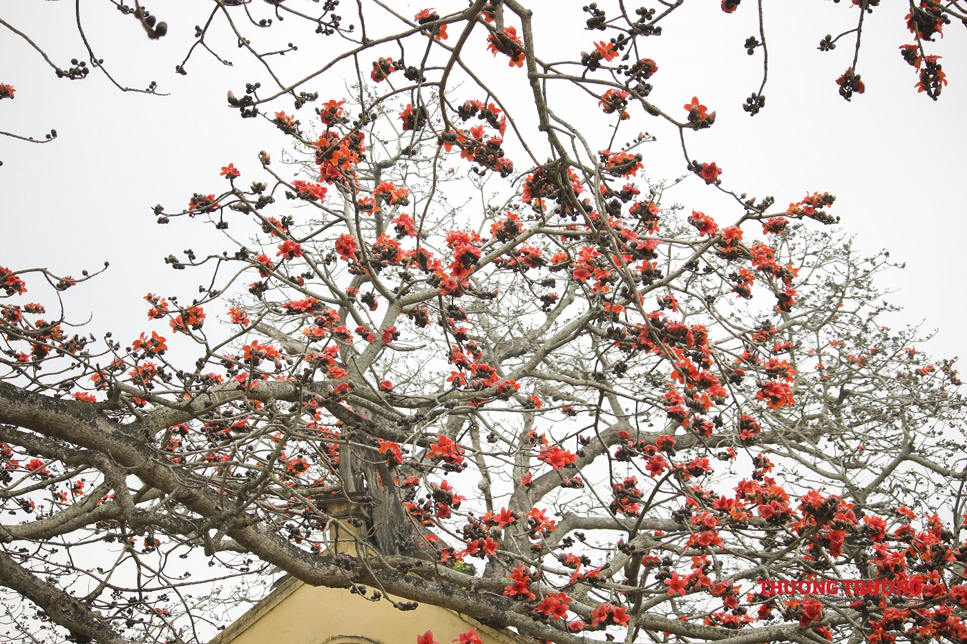 Vào mùa đông, cây gạo trút hết lá để dành sang xuân nở ra những bông hoa rực rỡ như các đốm lửa giữa không trung. Thời gian hoa nở rực rỡ nhất kéo dài 2-3 tuần, đến hết tháng Ba, đầu tháng Tư trước khi mùa hè rực nắng.