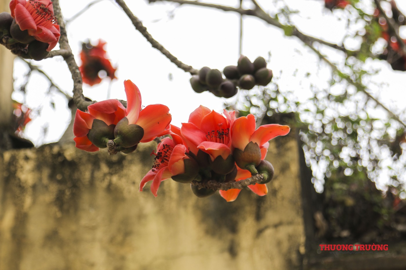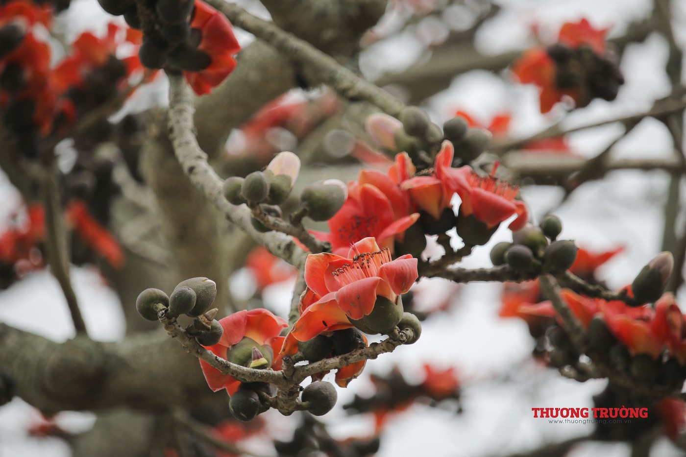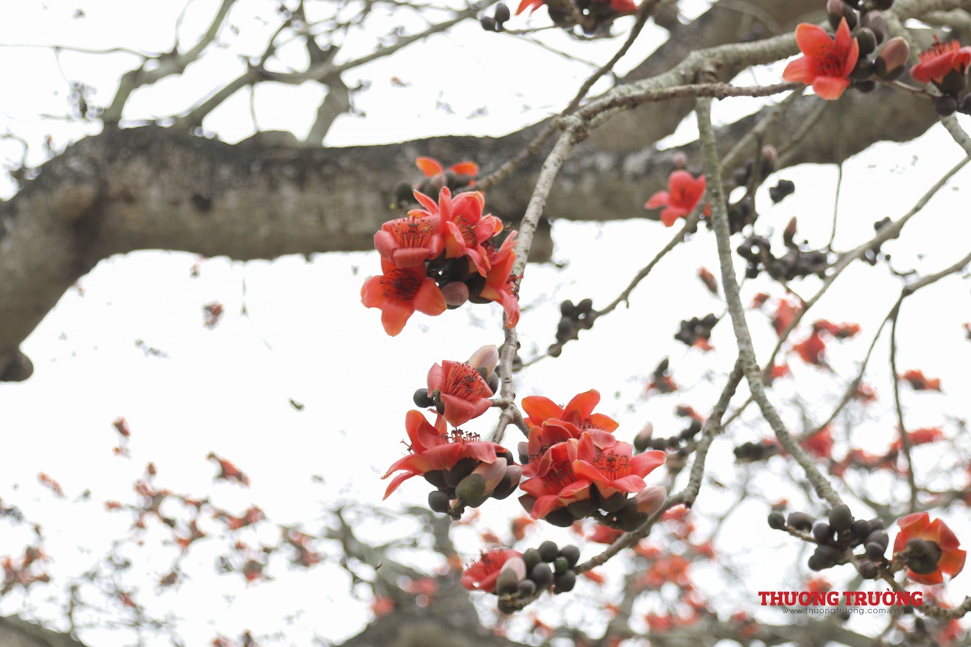 Vào mùa đông, cây gạo trút hết lá để dành sang xuân nở ra những bông hoa rực rỡ như các đốm lửa giữa không trung. Thời gian hoa nở rực rỡ nhất kéo dài 2-3 tuần, đến hết tháng Ba, đầu tháng Tư trước khi mùa hè rực nắng.